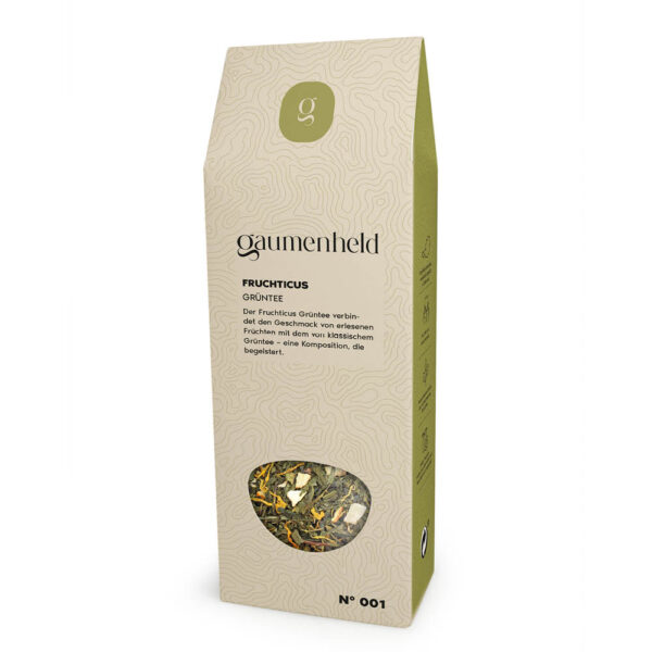 Unser Fruchticus Grüntee ist eine genussvolle Kombination aus aromatischem Grüntee und erfrischenden Fruchtnoten. Dieser Tee ist der ideale Begleiter für eine belebende Pause zu jeder Tageszeit. Die ausgewogene Mischung bietet ein Geschmackserlebnis, das seine Sinne belebt und dir gleichzeitig eine angehnehme Auszeit vom Alltag ermöglicht. Genieße ihn an heißen Tagen auch gekühlt als erfrischendes Sommergetränk.