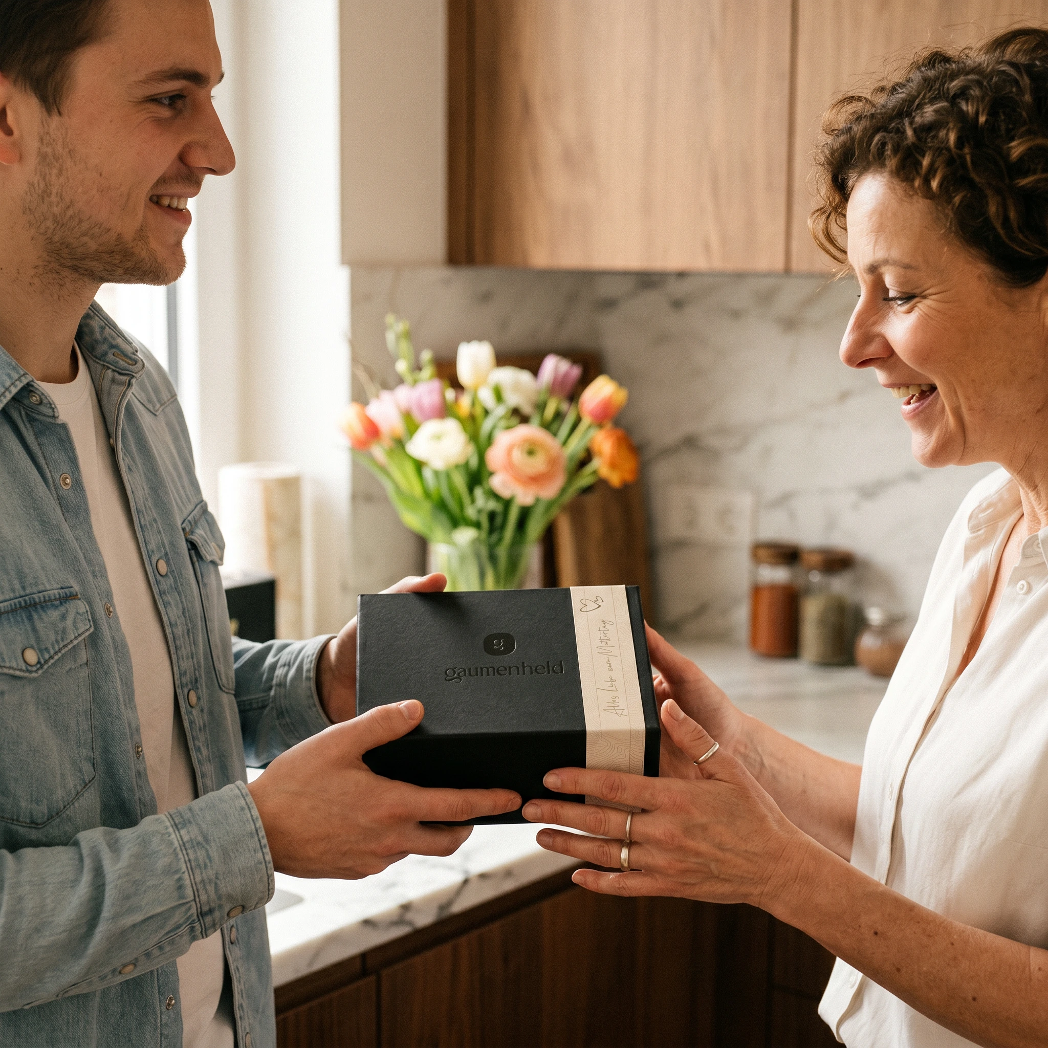 Blumen und Schokolade wie jedes Jahr? Oder endlich etwas, das wirklich zählt? Wähle dieses Jahr unser „Danke Mama!“ Gewürz-Geschenkset, um nicht nur deine Wertschätzung auszudrücken, sondern auch wertvolle Zeit mit deiner Mama zu genießen. Dieses Set enthält unsere Gewürz-Bestseller Gemüse Allrounder und Zitrone & Ingwer Salz im Spice Pot – und wird durch einen Gutschein für ein gemeinsames Kocherlebnis ergänzt. Dieser Gutschein, präsentiert als liebevoll gestaltete Gewürz-Grußkarte, bietet die perfekte Gelegenheit, zusammen zu kochen, zu lachen und einfach dankbar für die gemeinsame Zeit zu sein. Ein Geschenk, das weit über den Muttertag hinaus Freude bereitet.